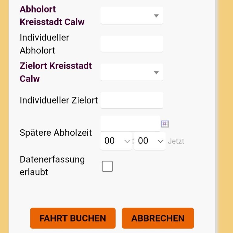 4. Für den Calwer Bereich mit Gemeinden haben wir eine Dropdown-Auswahlliste erstellt. Sicher findet ihr Eure Heimat auch darunter, ansonsten bitte das Feld mit dem individuellen Abhol- & Zielort befüllen